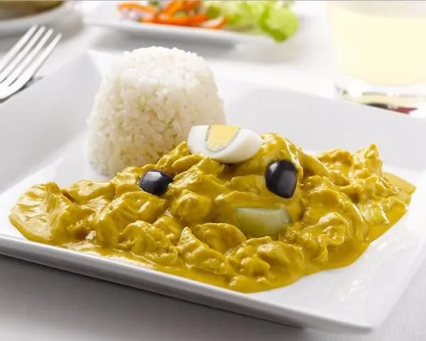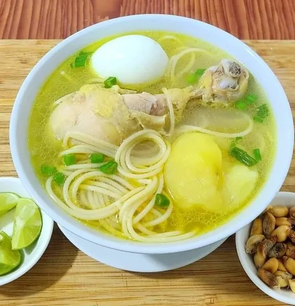 Thick cream based on yellow chili and bread, served with shredded chicken, yellow potato, egg, and olive.