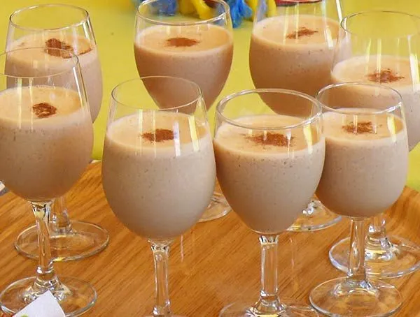 Pisco with carob syrup, milk, egg yolk, and cinnamon. Sweet and creamy.