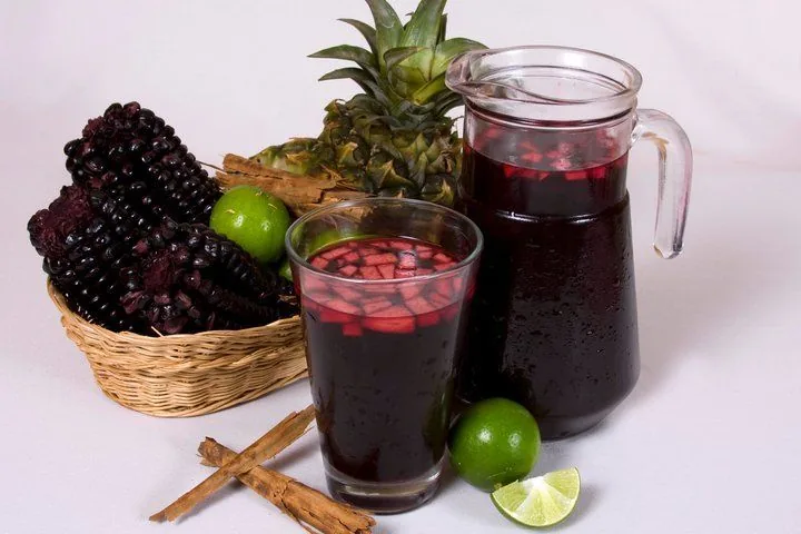 Refreshing purple corn drink boiled with pineapple, cinnamon, and lime drops.