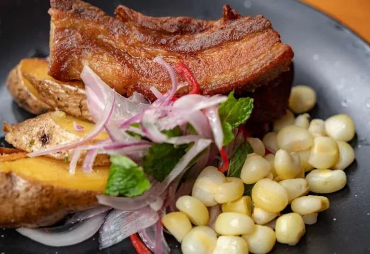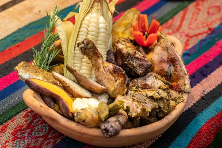Andean feast cooked underground with hot stones. Includes meats, potatoes, fava beans, and humitas.