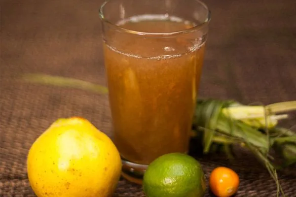 Hot medicinal drink of barley, flaxseed, and medicinal herbs with lots of lime.